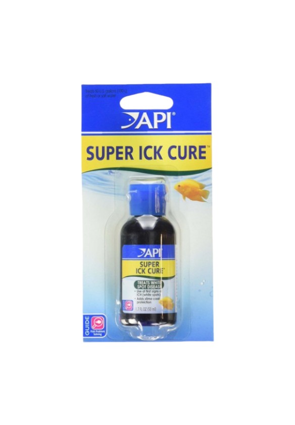 API Super ICK Cure treats Ich or white spot disease in fish. This liquid formula works quickly to rid fish of Ichthyophthirius and Cryptocanyon both highly contagious parasitic diseases.