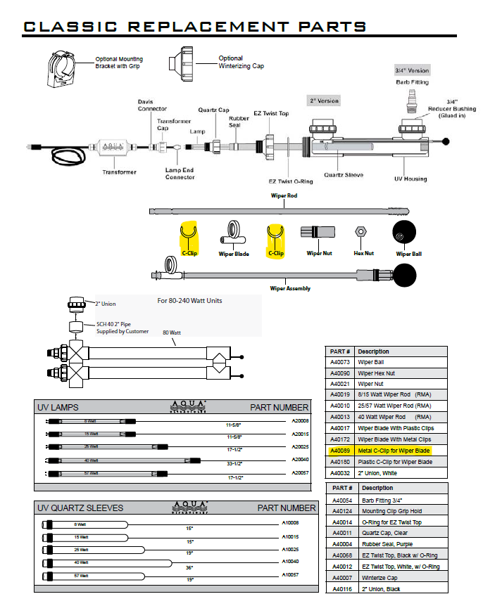 Aqua Ultraviolet Classic Series Wiper Metal C-Clips Part# A40089