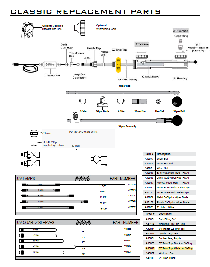 Aqua Ultraviolet White EZ Twist Top w/ O-ring Part # A40012