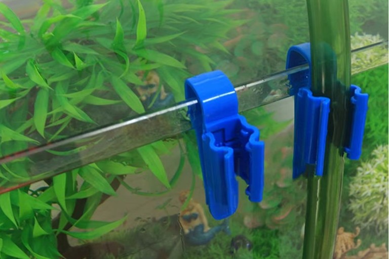 Aquarium Tank Adjustable Hose Holder, Water Pipe Tube Clamp Part #AQ-HOSE-CLPBLU