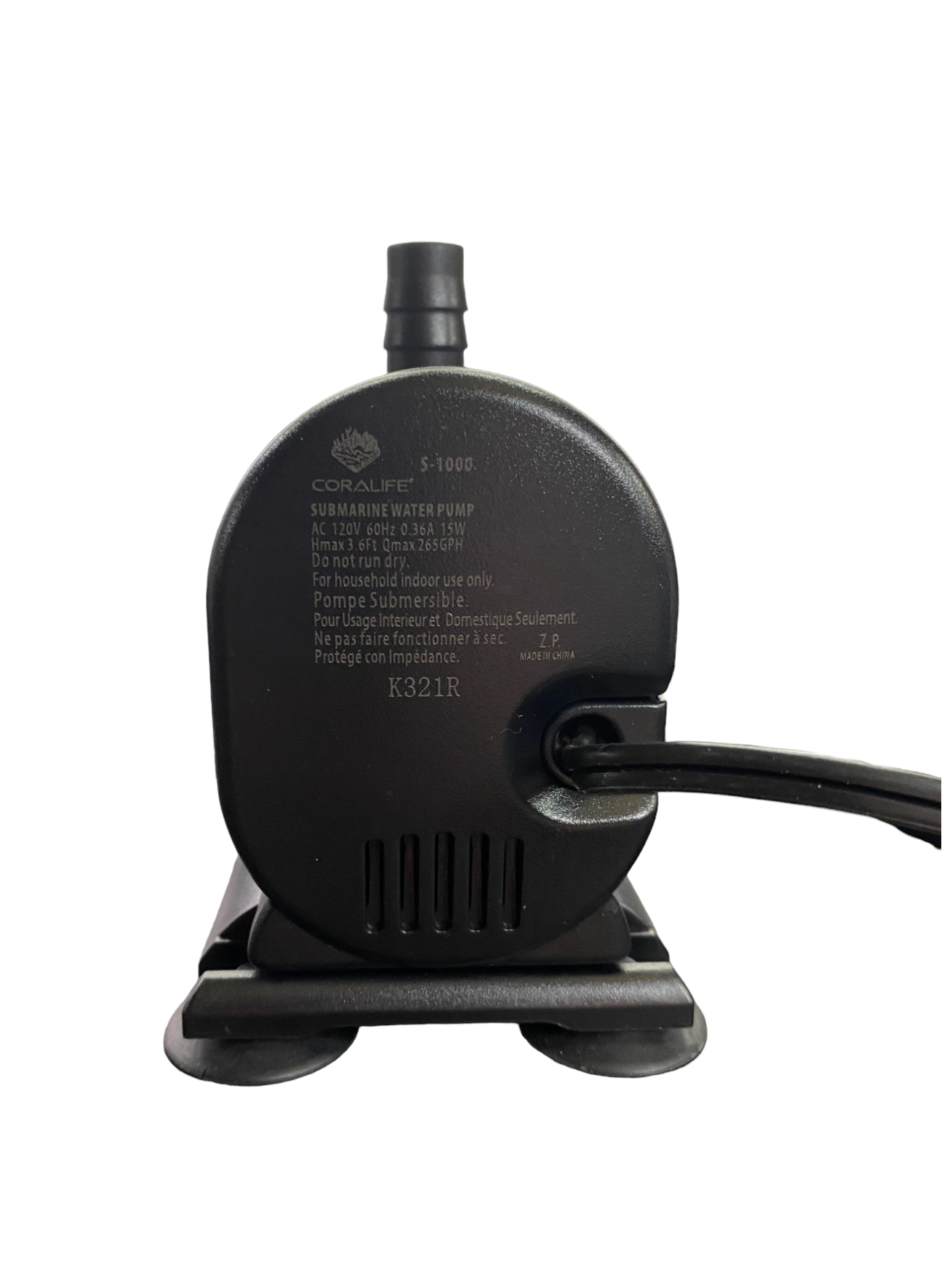 - 265 GPH / 0.36 Amp 15 Watt