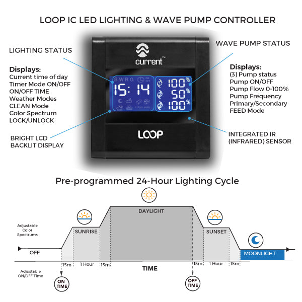 Controller is used to control Orbit IC LED lights & eFlux Wave Pumps in a LOOP network.