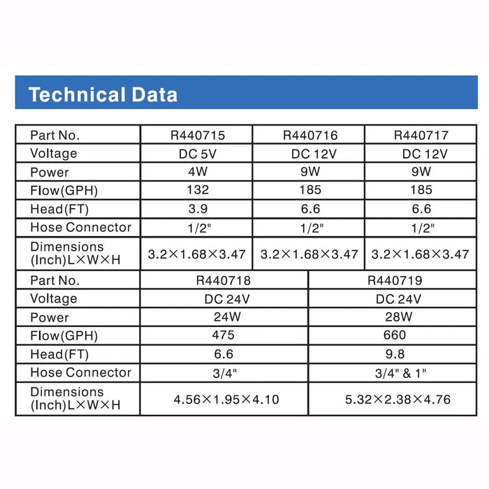 - Pump Dimensions (LxWxH): 3.2" x 1.68" x 3.47"