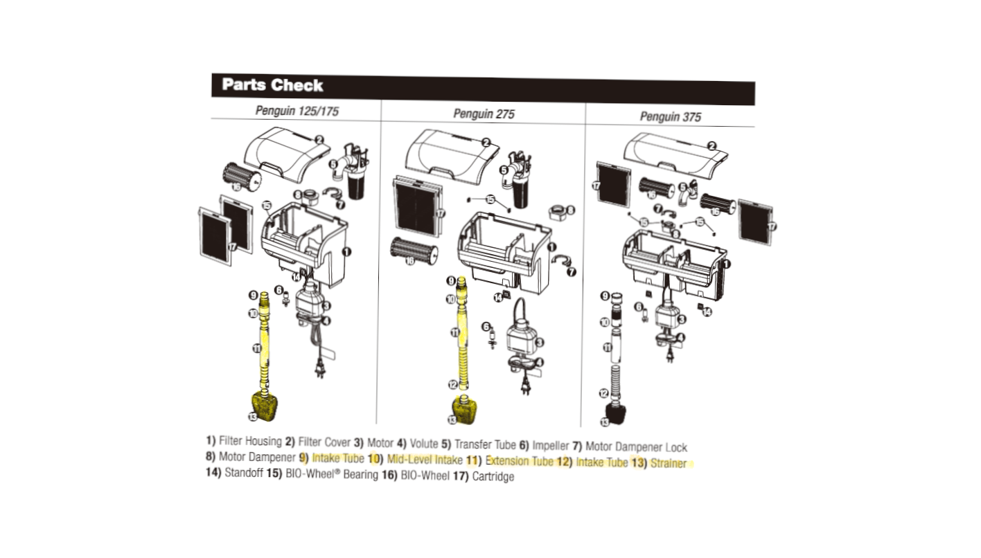 Marineland Penguin Pro 125 & 175 Intake Tube Assembly Part AQ-78255