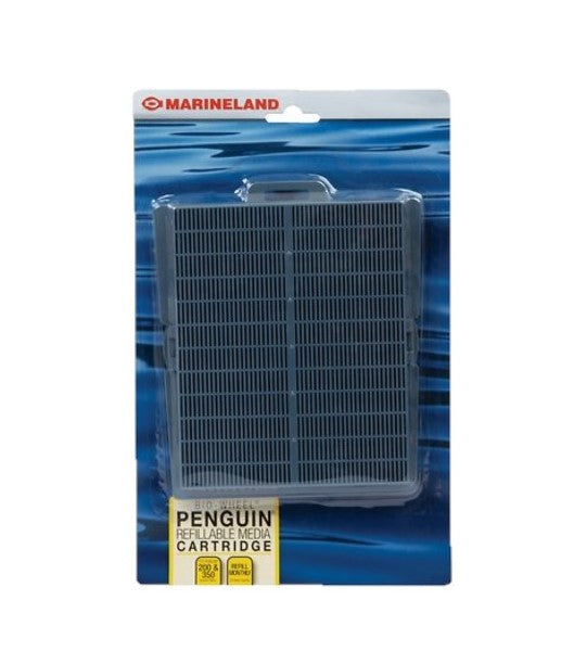 he Marineland Penguin Refillable Filter Media Cartridge is a great alternative to standard media bags. This refillable cartridge frame has a patented ribbed design keeps the media of choice evenly distributed for maximum water-to-media contact. The snap open and lock tight design also ensure no media spillage for crystal clear and clean water at all times.