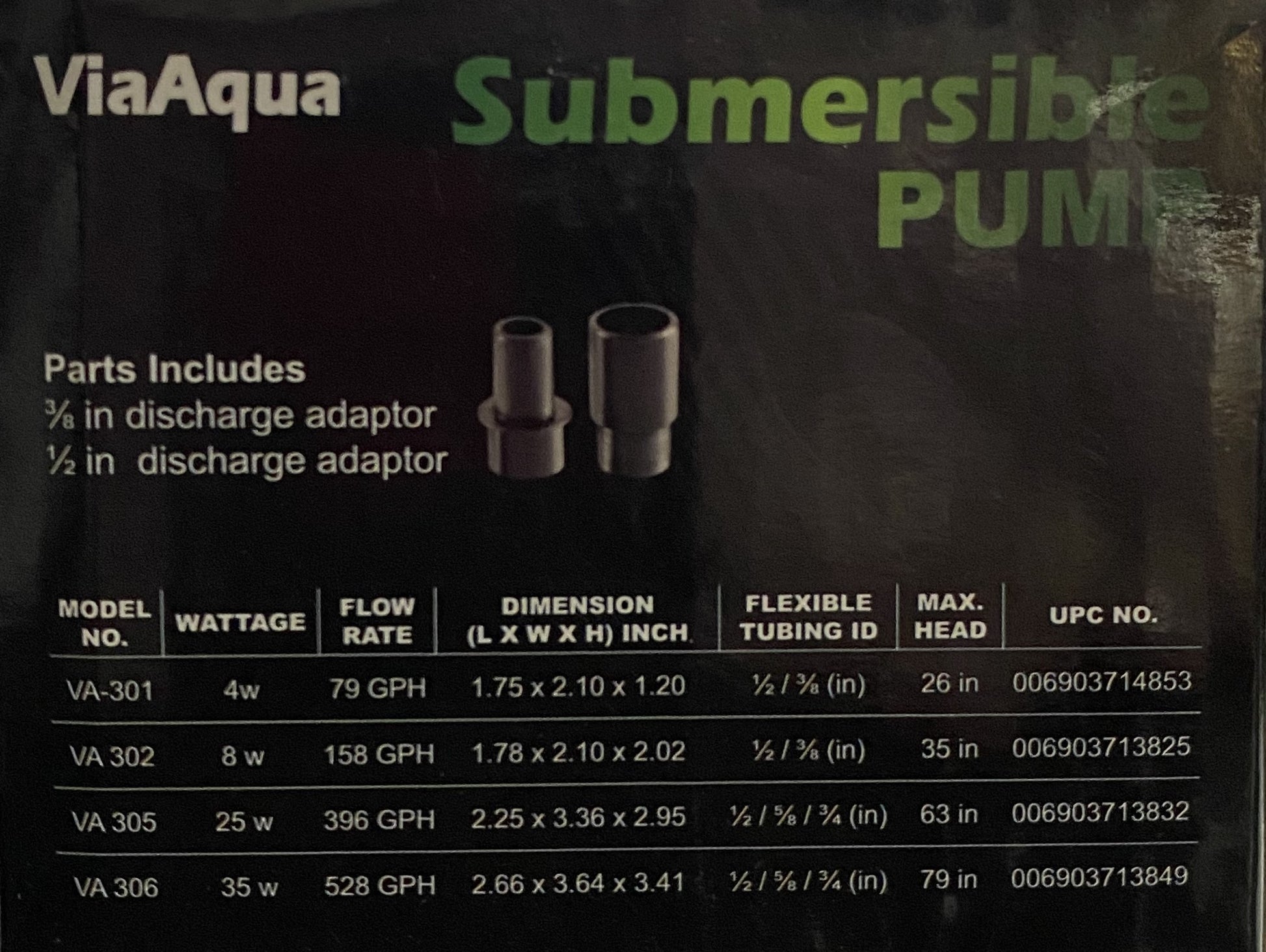 ViaAqua VA-305 Submersible Pump 396 GPH